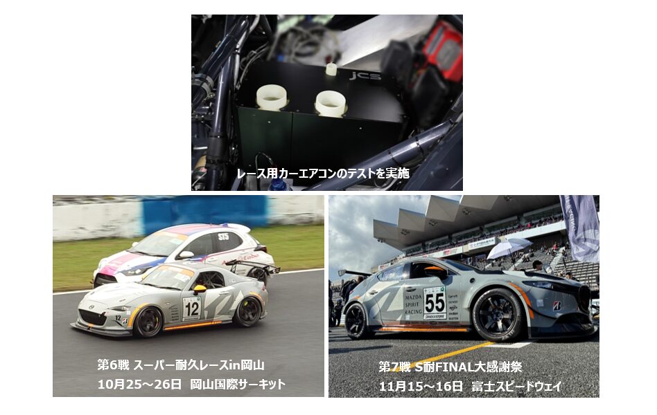 2025年10月、レース車両走行テストに参加し、納入したエアコンのテストを行いました。エアコンは狙い通り機能し、ドライバーの方々にも好評を頂きました。